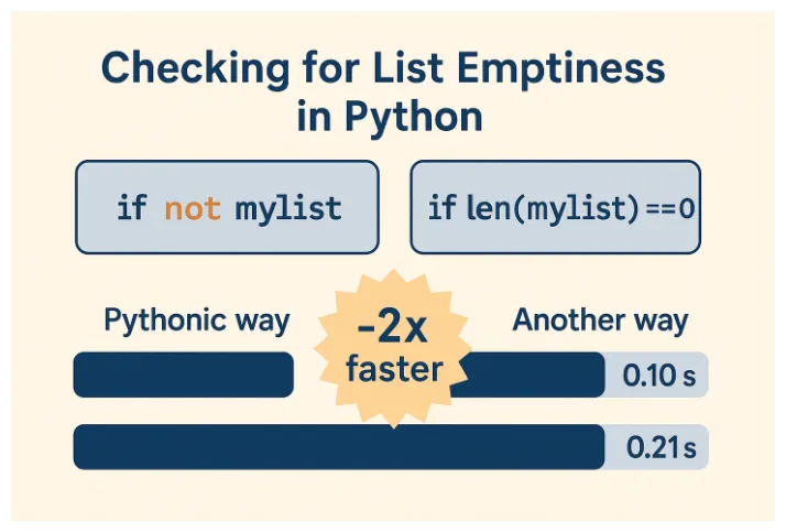 ⚙️ En este artículo se demuestra cómo una simple decisión en Python —usar if not list en lugar de len(list) == 0 — puede duplicar el rendimiento 🐍⚡