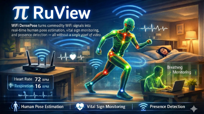 RuView (antes WiFi DensePose) reconstruye la postura humana, detecta signos vitales y reconoce presencia a través de paredes usando únicamente las señales WiFi existentes en el entorno. Sin cámaras. Sin wearables. Solo física.