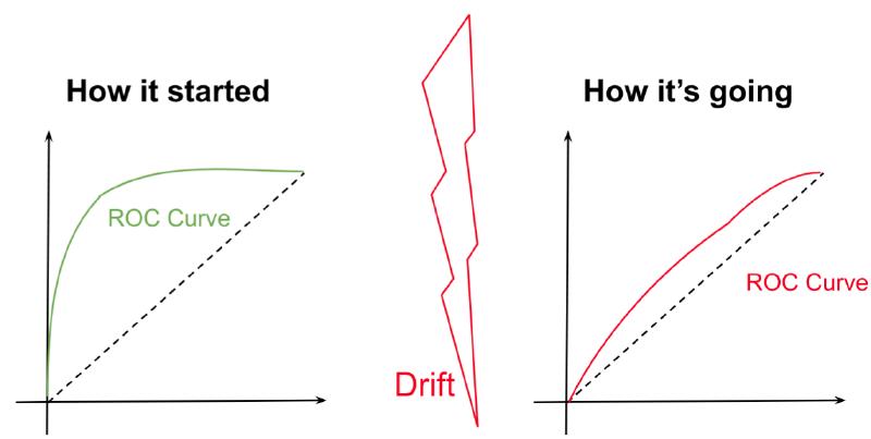 - 📉 Data drift: la distribución de las features cambia. No siempre degrada el modelo, pero es señal de alerta.