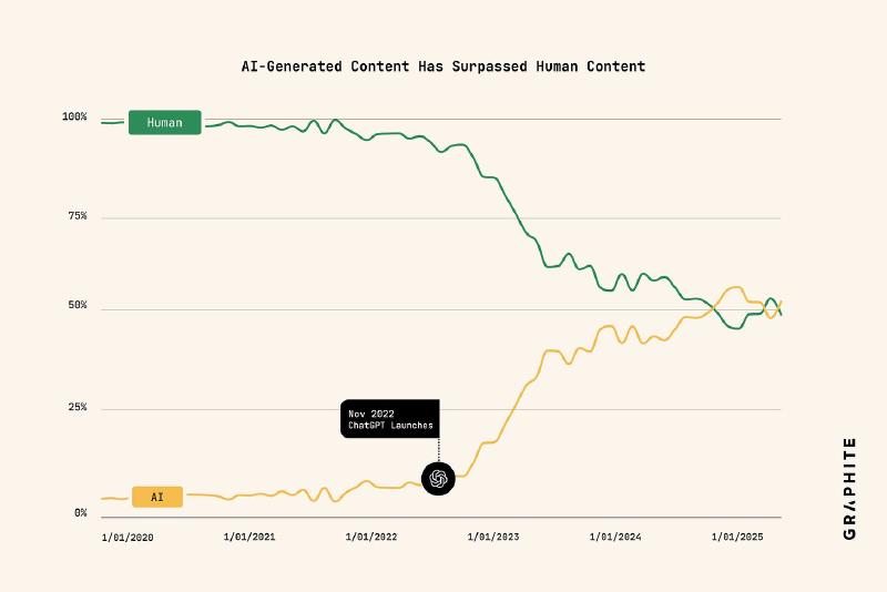 📊 El contenido generado por IA ya supera al humano en volumen. Inicialmente es un milagro para el consumidor, pero a largo plazo solo beneficia a quienes venden abundancia de baja calidad.