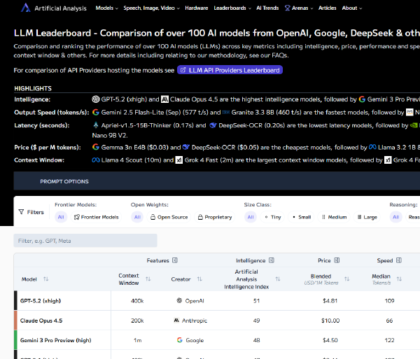 Comparador de más de 100 modelos de IA
